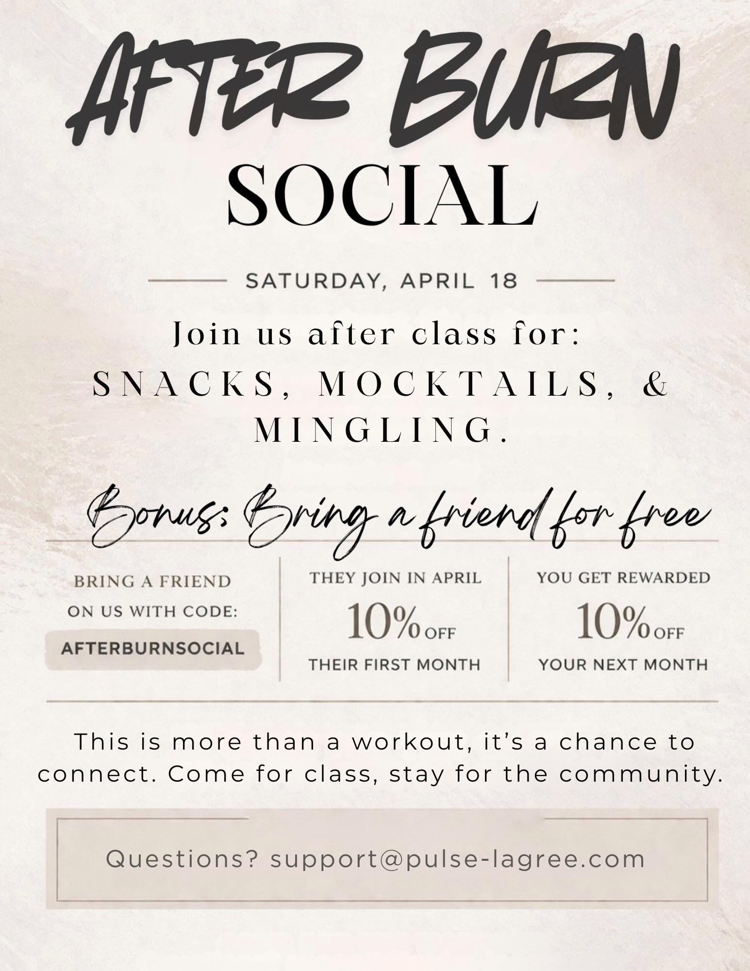 Lagree is more fun with friends, & Community Classes are the perfect opportunity to grab your people and show ‘em what we do here at Pulse. It's also a great place to start your journey with us.